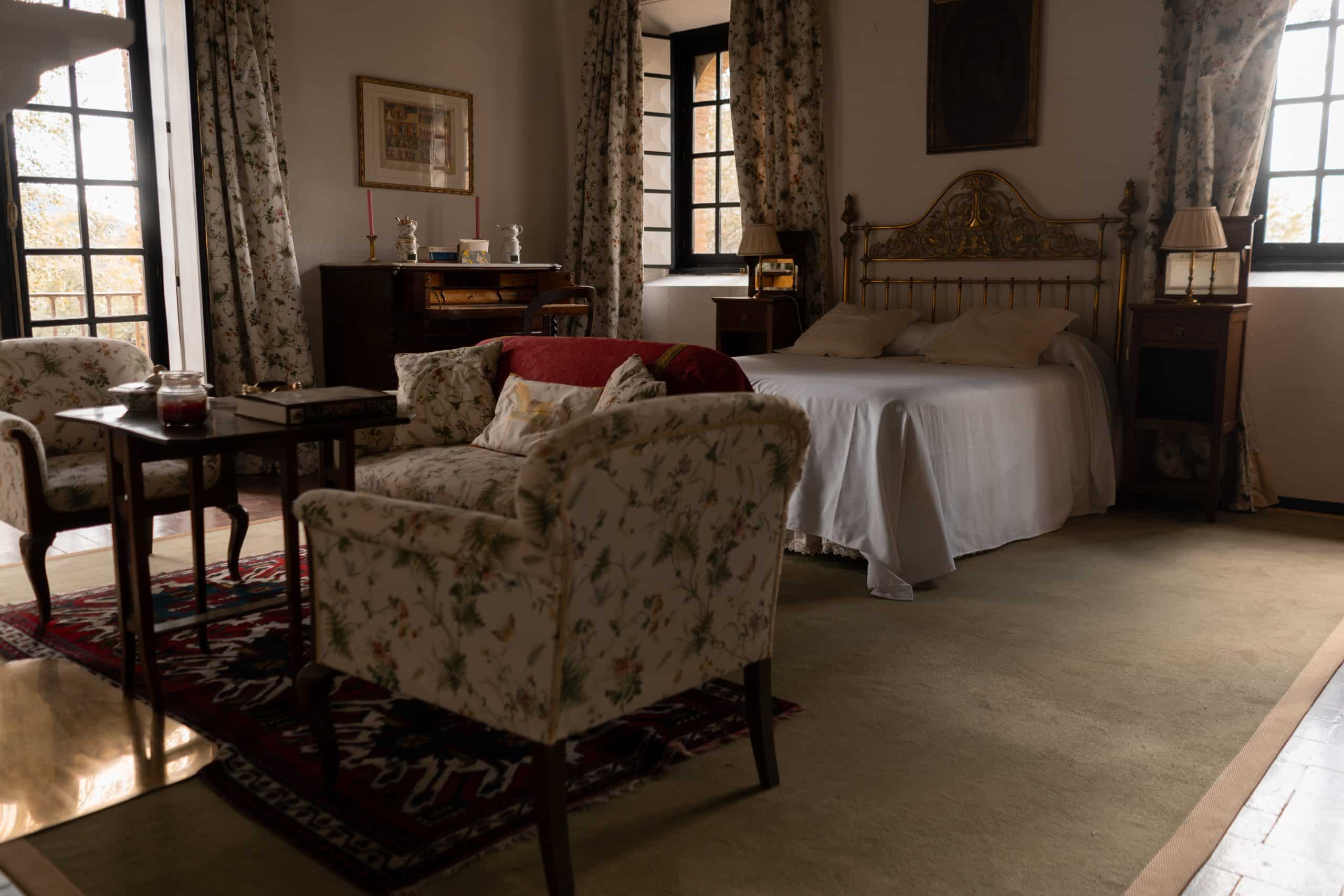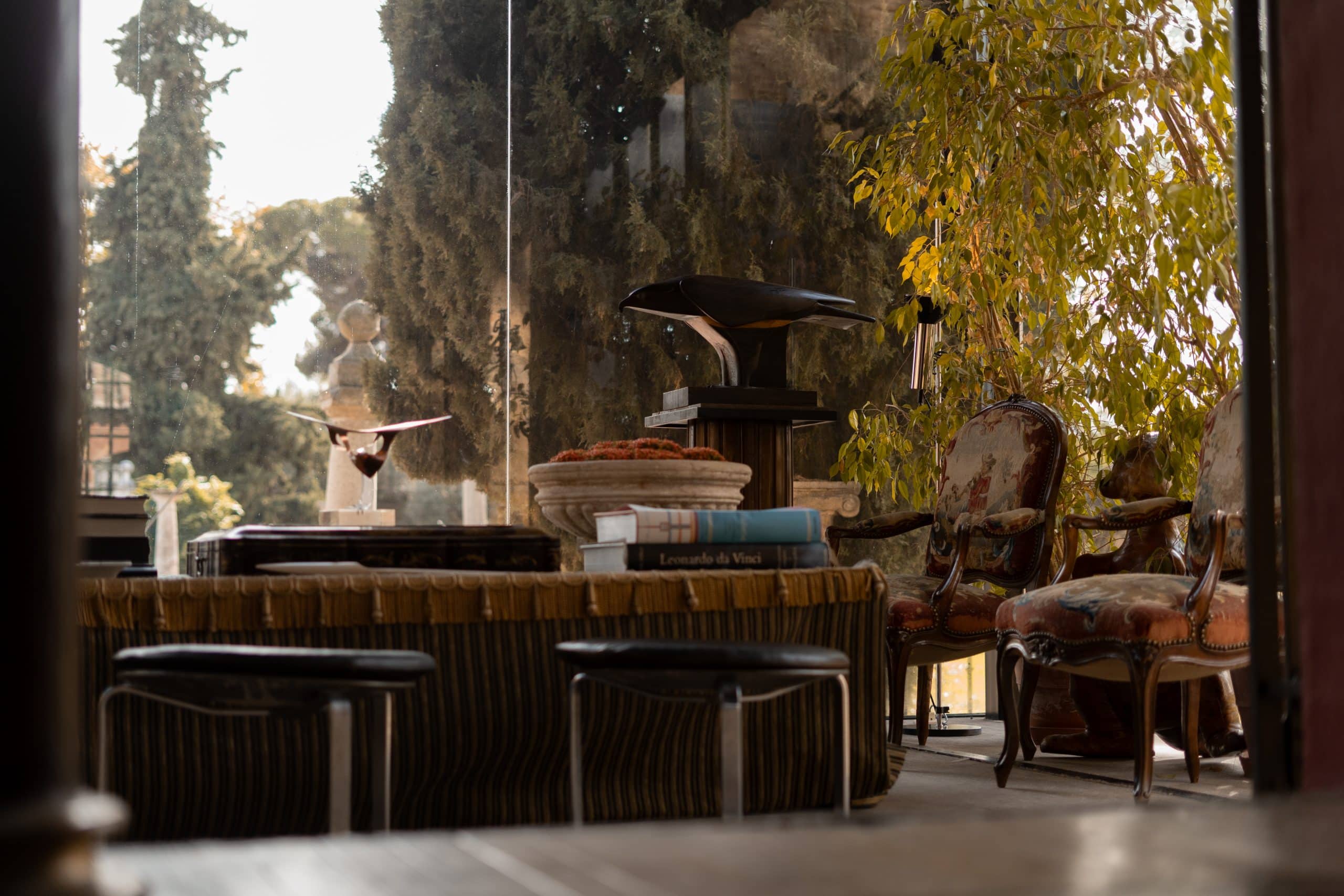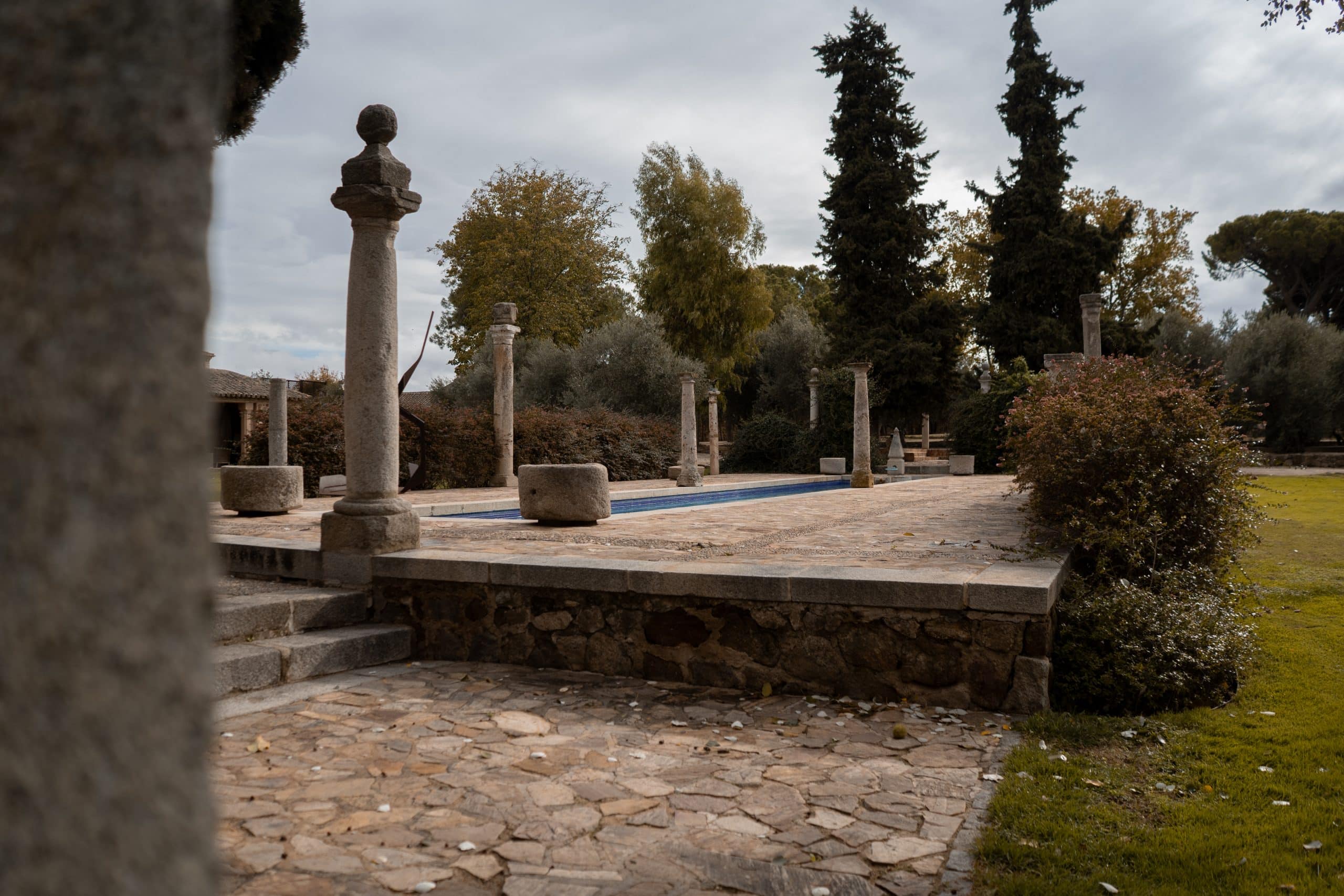 The estate is enclosed by an extensive walled enclosure containing formal gardens and an olive grove. Within the grounds stand several ancillary buildings that once served as dependencies of the palace.