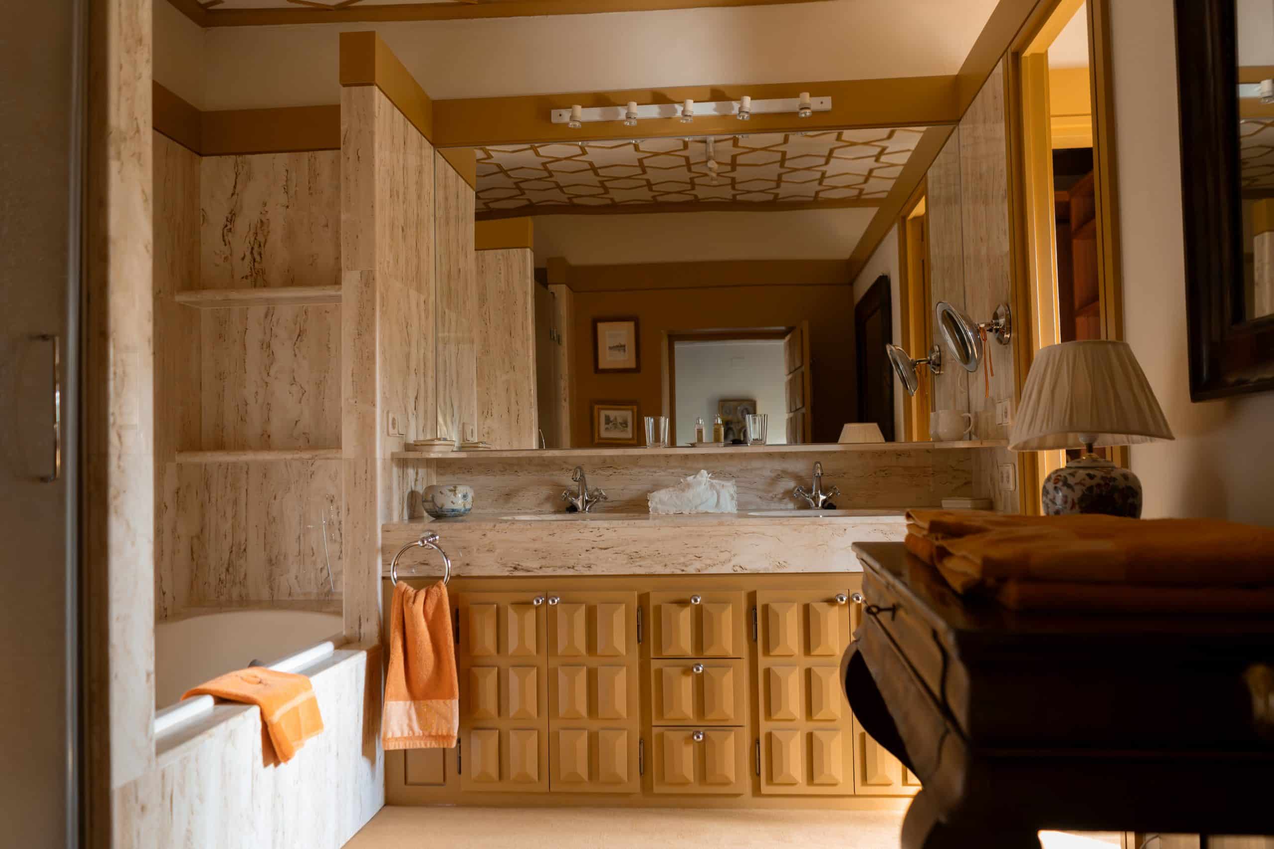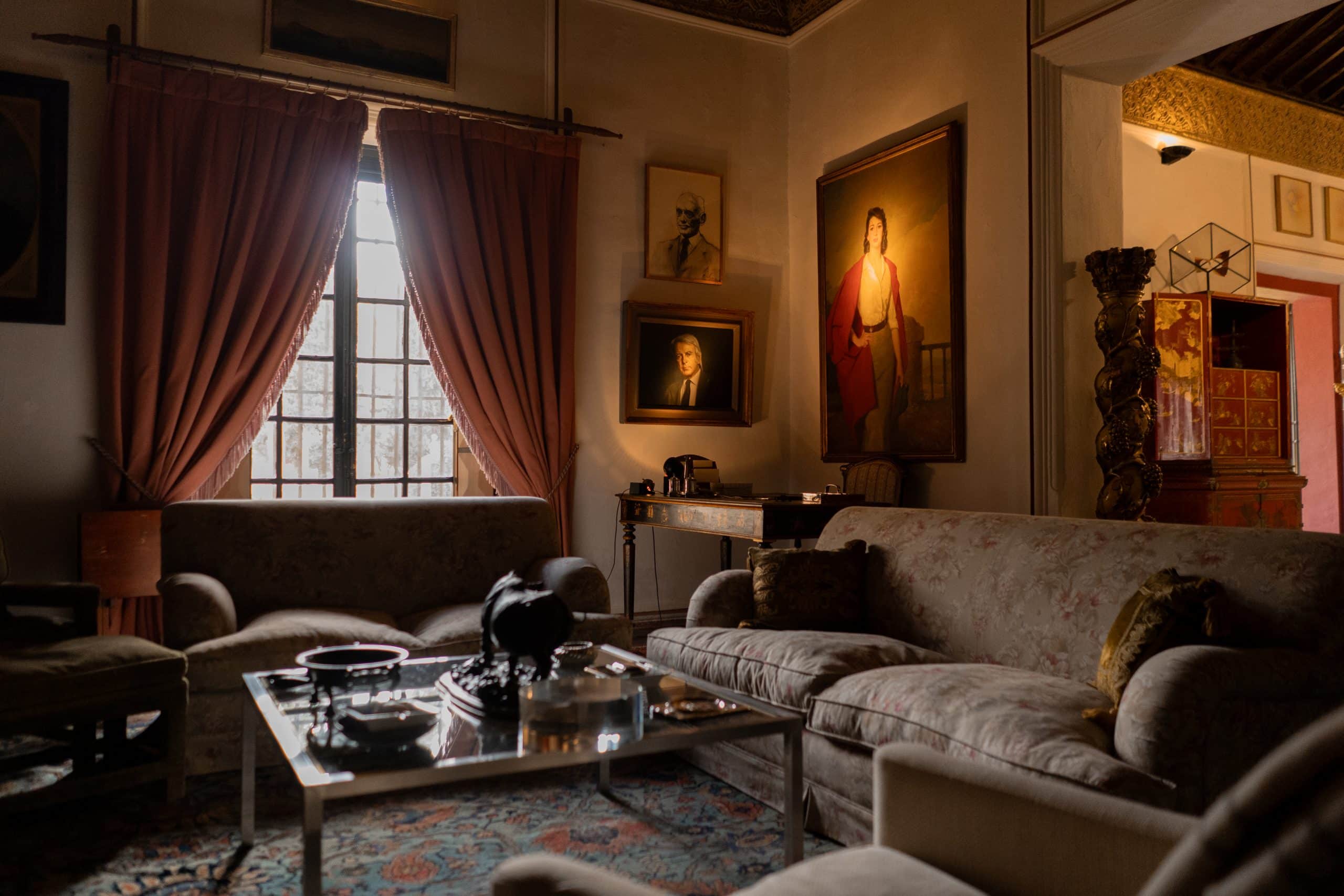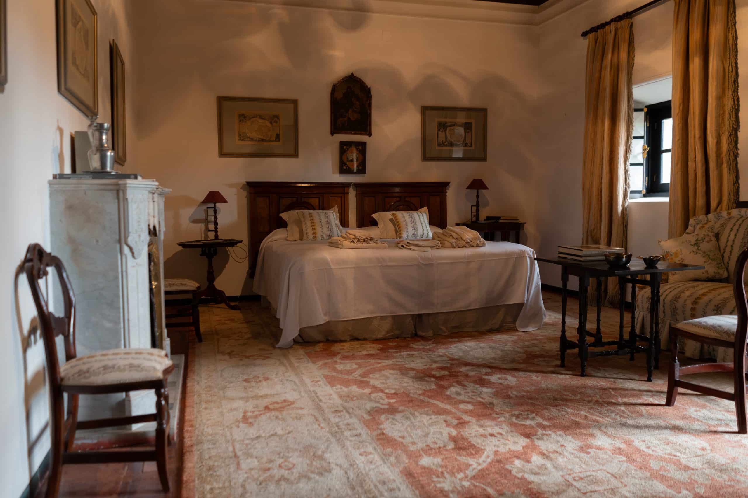 The estate is enclosed by an extensive walled enclosure containing formal gardens and an olive grove. Within the grounds stand several ancillary buildings that once served as dependencies of the palace.