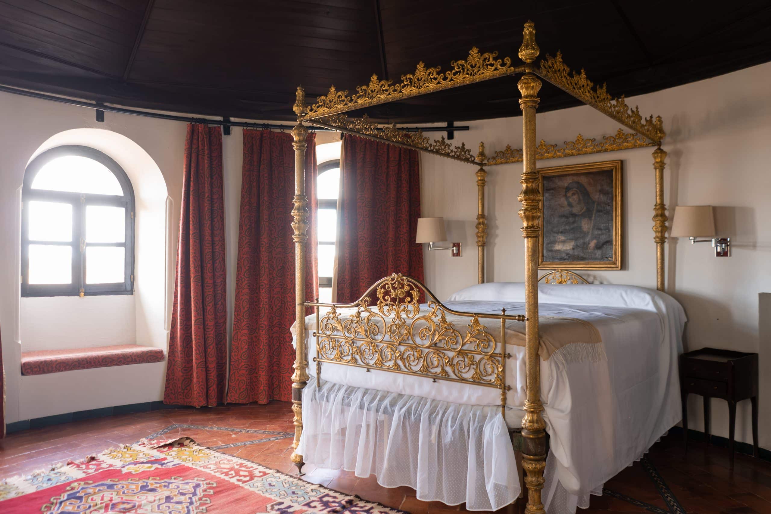 Layos Palace is built in Mudéjar style, featuring three square towers at its corners and a cylindrical tower dominating the main façade.