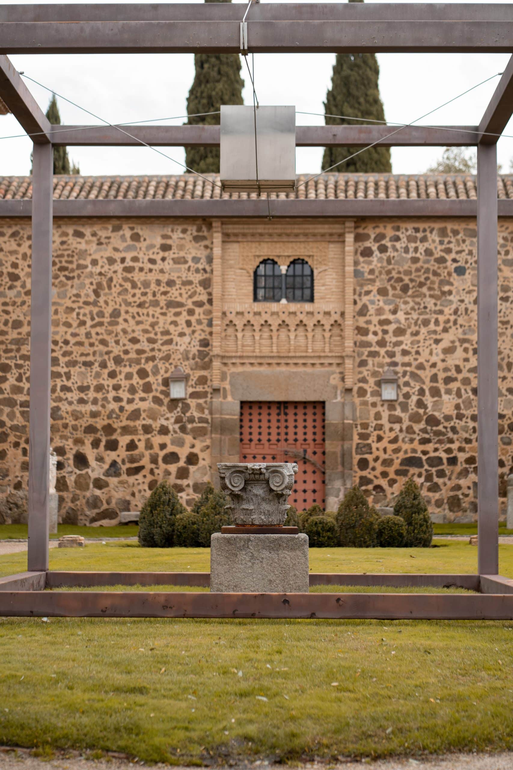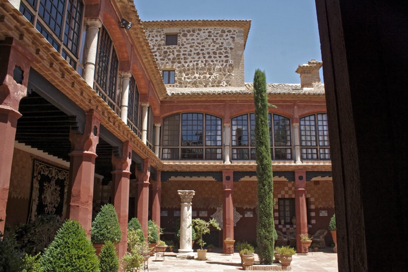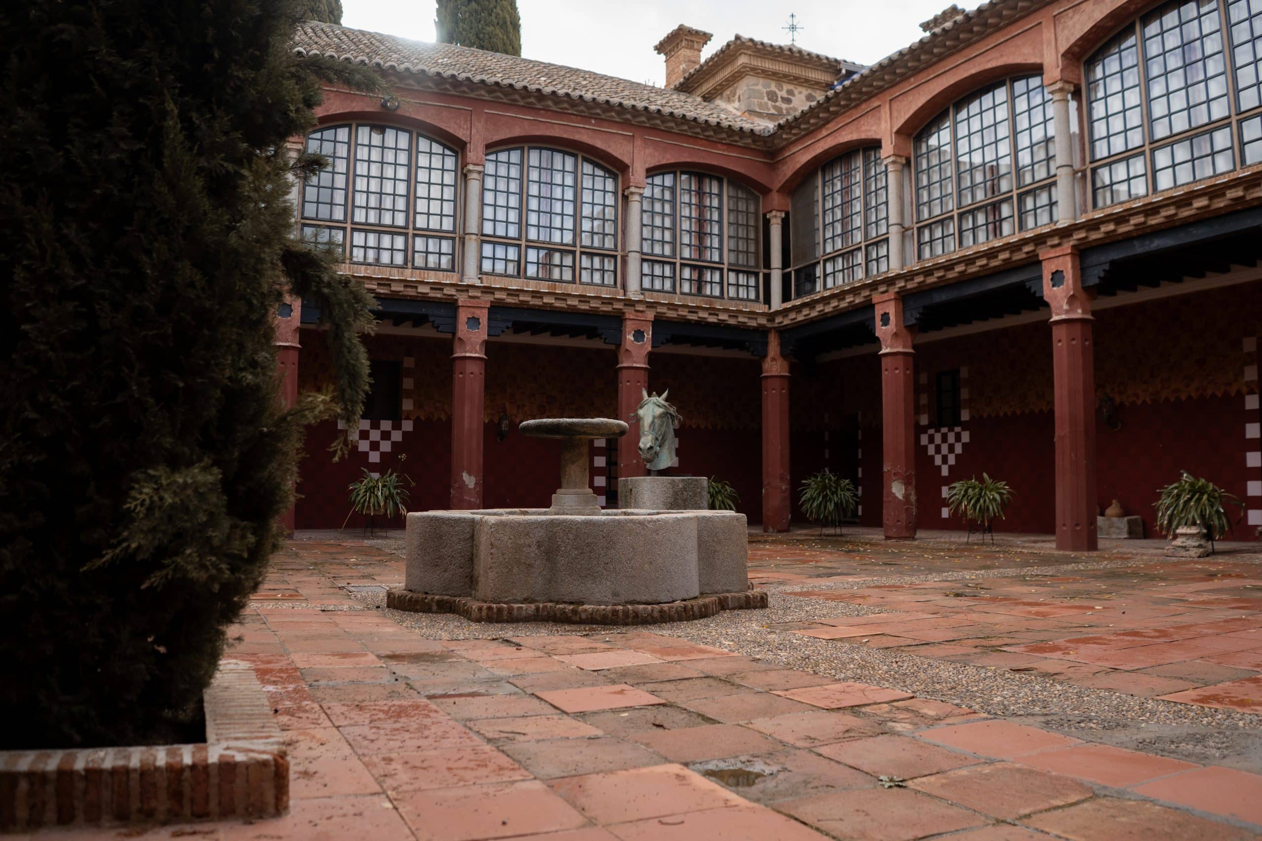 Layos Palace is built in Mudéjar style, featuring three square towers at its corners and a cylindrical tower dominating the main façade.